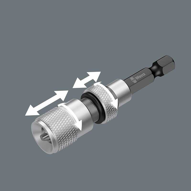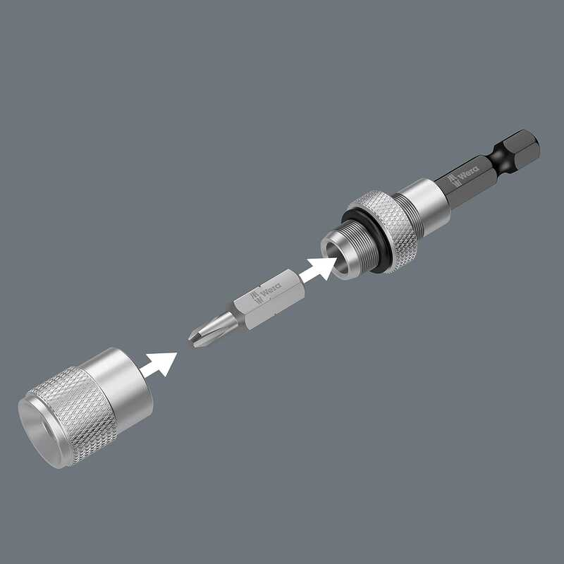 Fixare: Potrivit pentru biti cu antrenare hexagonala externa de 1/4" in conformitate cu DIN ISO 1173-C 6,3