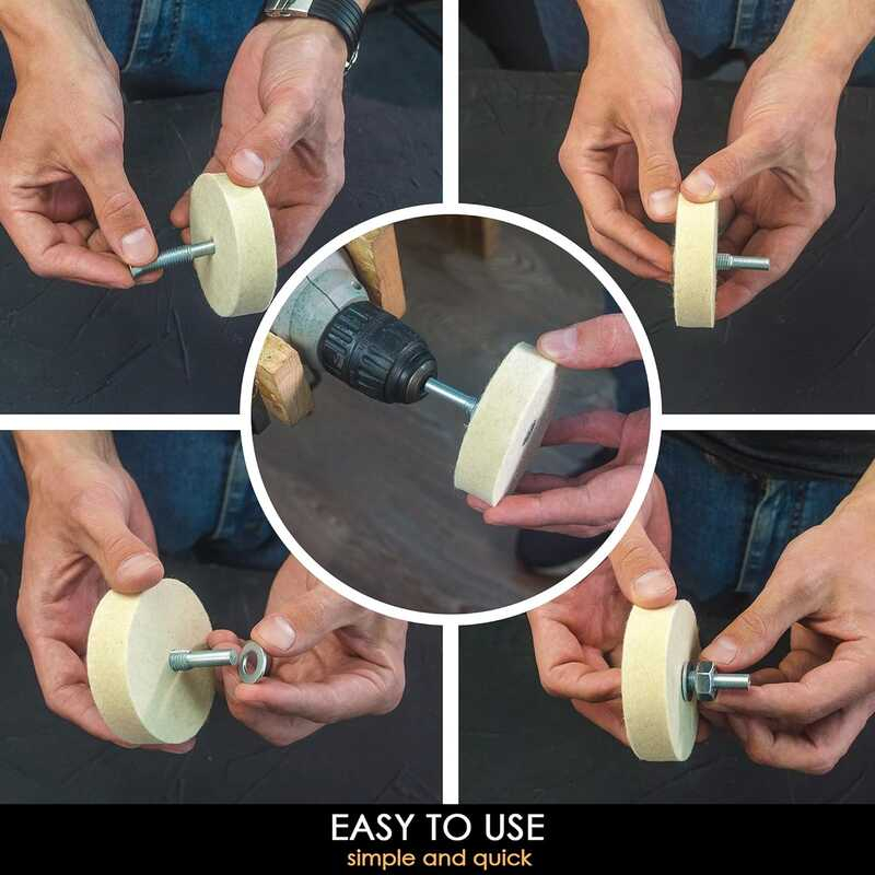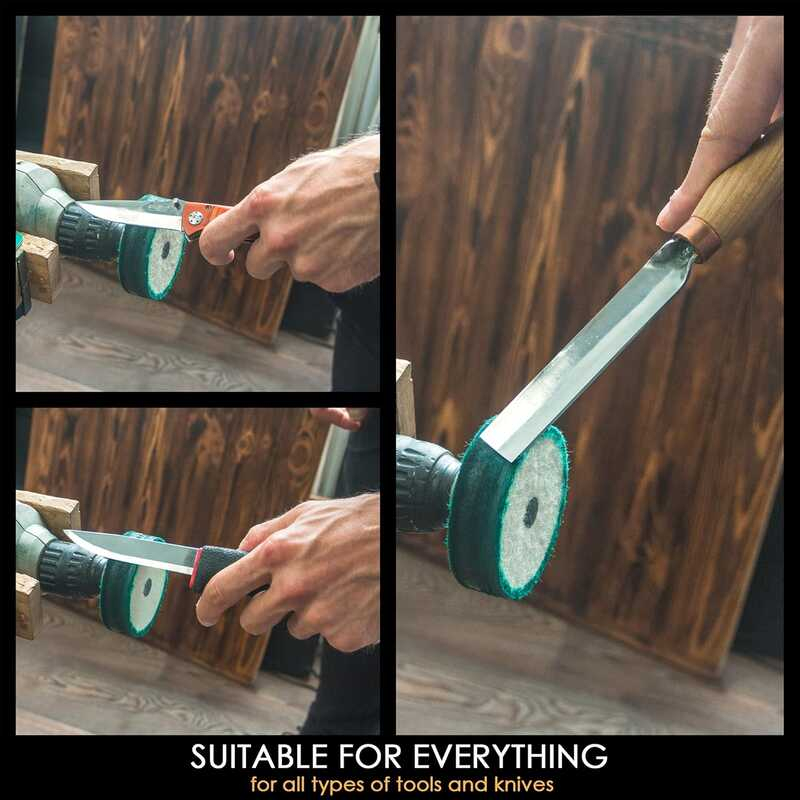 Roata ideala pentru lustruirea lamelor dupa ascutire, proiectata pentru a fi prinsa la o burmasina sau o unealta rotativa similara