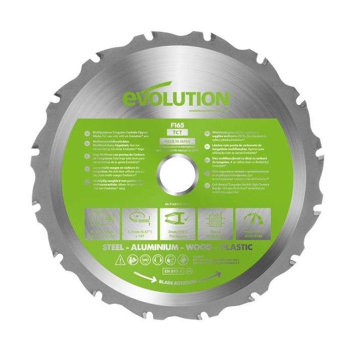 Disc pentru fierastrau circular, taiere multifunctionala Evolution EVOF165TCT-14CS, Ø165 x 20 mm, 14 dinti