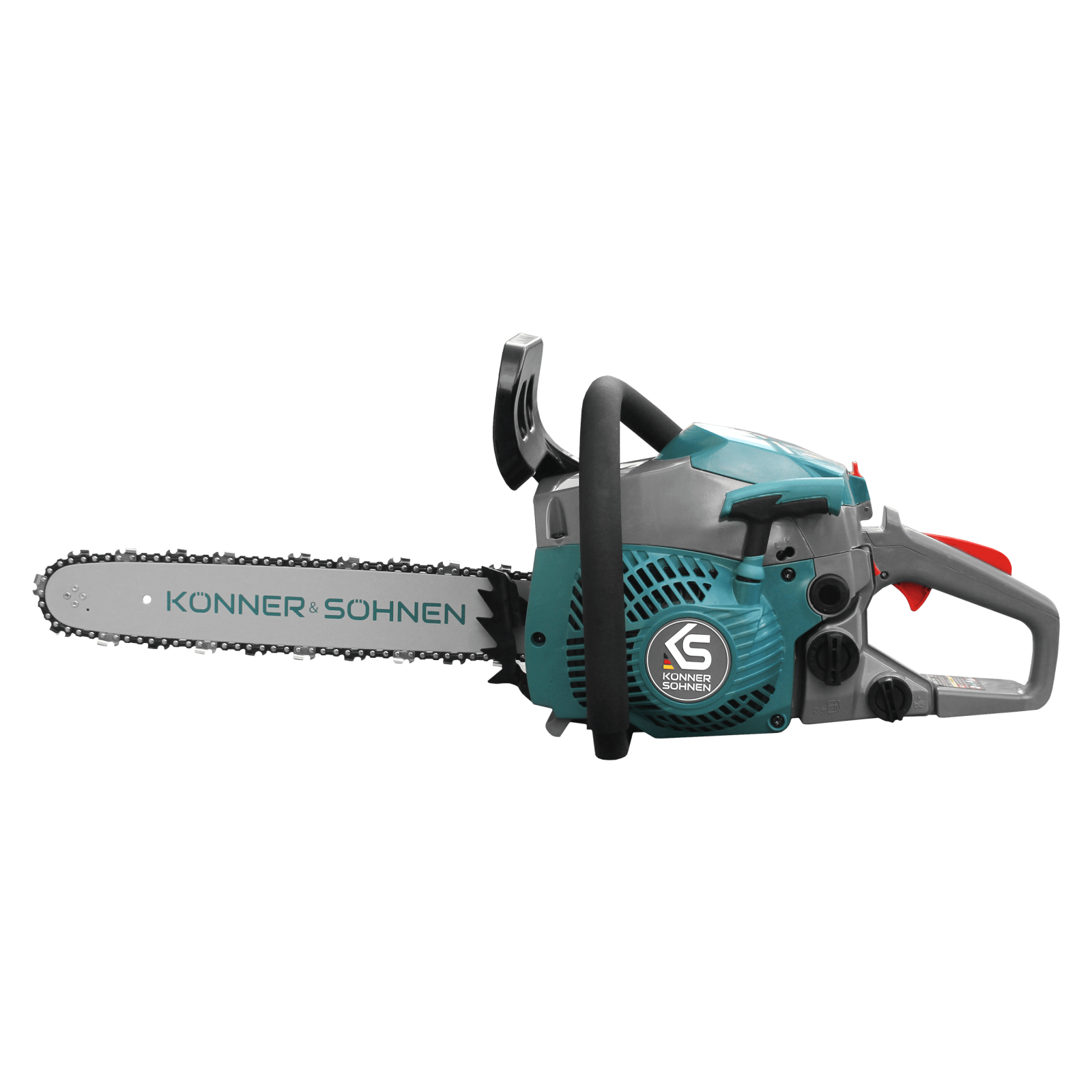 Drujba Könner & Söhnen® KS CS20G-16 (2,1 CP, 1,6 kW, lamă 40 cm) combină performanța, fiabilitatea și confortul în utilizare. Motorul fiabil asigură arderea eficientă a combustibilului, reduce consumul și crește puterea. Modul „Vară/Iarnă” protejează carburatorul împotriva înghețului. Siguranța este garantată de frâna inerțială, opritorul zimțat, opritorul de lanț și butonul de blocare a trăgaciului clapetei de accelerație, iar pornirea ușoară este asigurată de EASY START, primer și butonul automat STOP. Tensionarea laterală a lanțului, accesul rapid la filtru și mânerul circular ergonomic cu strat de cauciuc fac lucrul confortabil chiar și pe perioade lungi de utilizare.