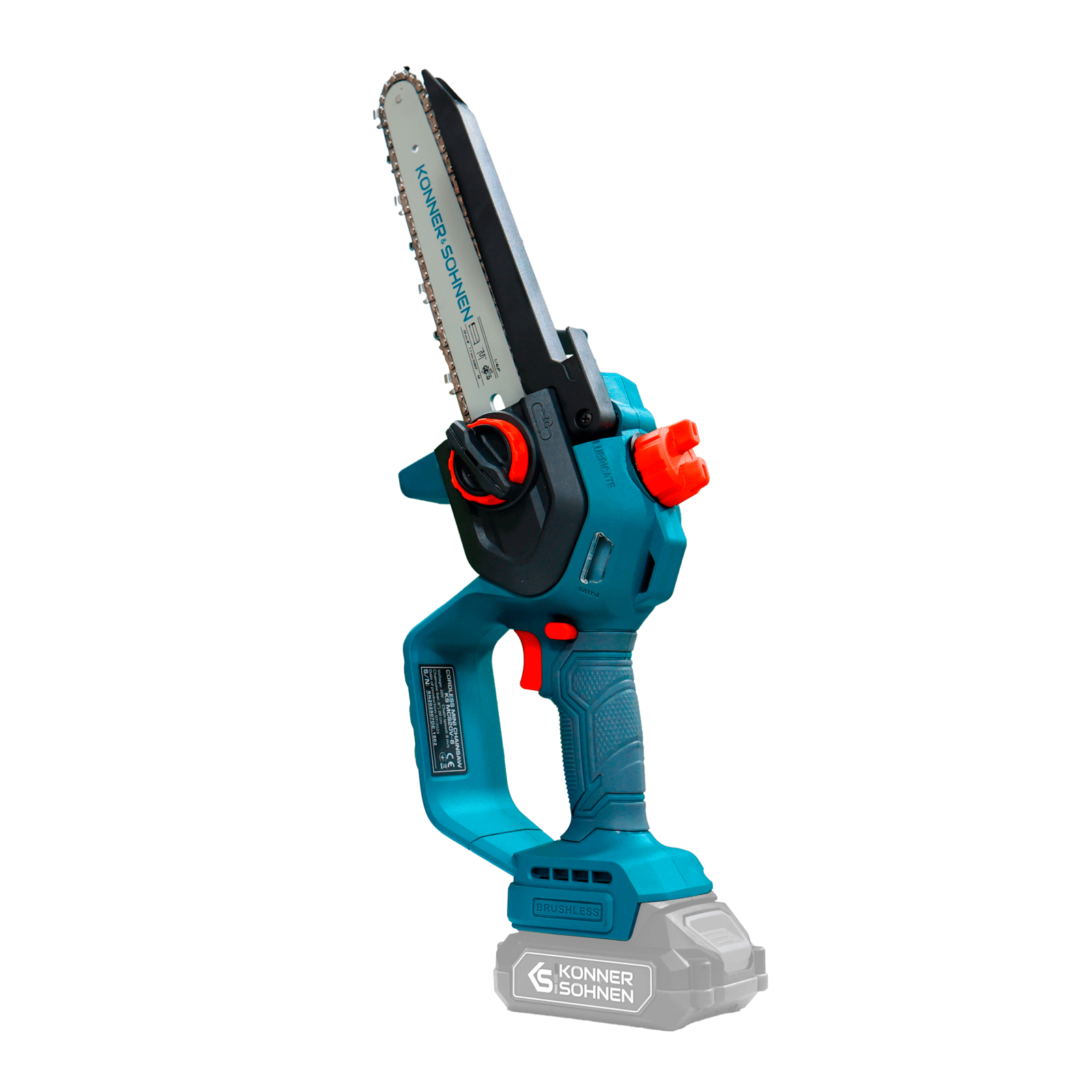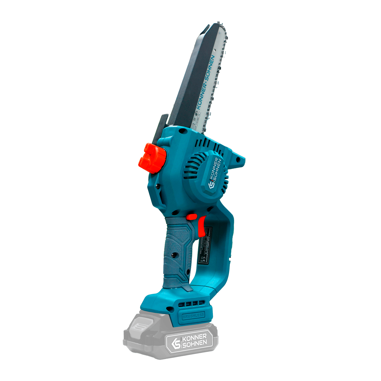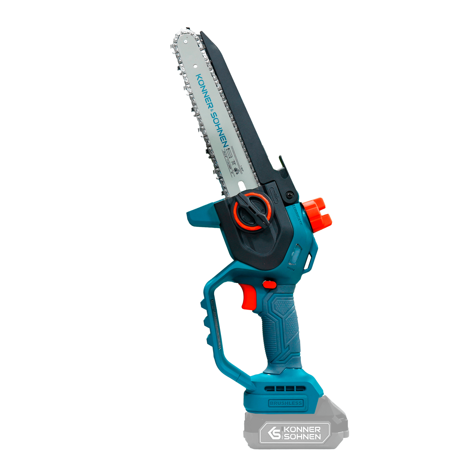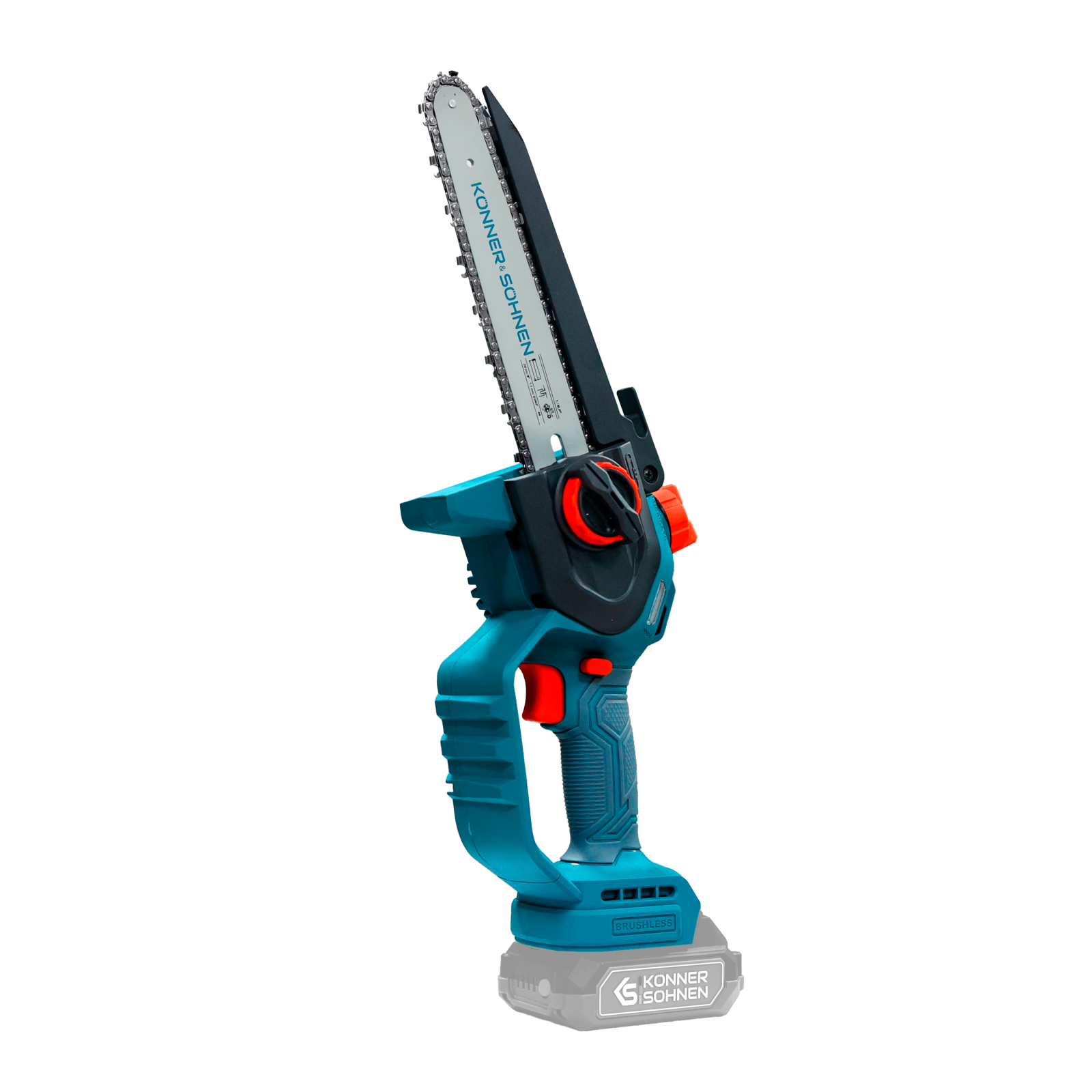 Ferăstrăul cu acumulator KS MCS20V-8 (fără baterie și încărcător) marca Könner & Söhnen, cu lamă de 8″ (20 cm) și viteză a lanțului de 8 m/s, este un instrument fiabil pentru lucrările din grădină. Motorul puternic fără perii, cu garanție de 5 ani, funcționează silențios, durabil și stabil. Corpul compact și mânerul ergonomic din cauciuc oferă confort și control, chiar și cu o singură mână. Pentru siguranță sunt prevăzute un buton de siguranță, protecții și apărătoare, iar pentru comoditate – tensionarea rapidă a lanțului fără unelte, lubrifierea automată a lanțului și o fereastră pentru verificarea nivelului de ulei.