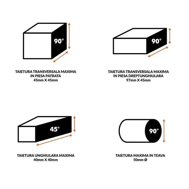 Capacitate maxima de taiere in lemn la 90°: 45 x 97 mm