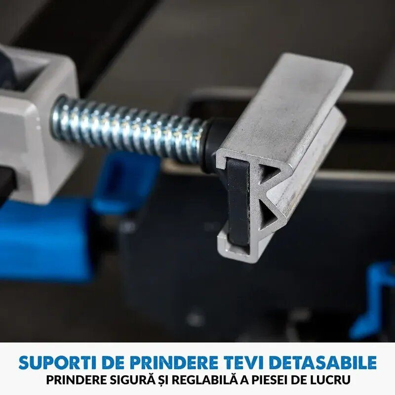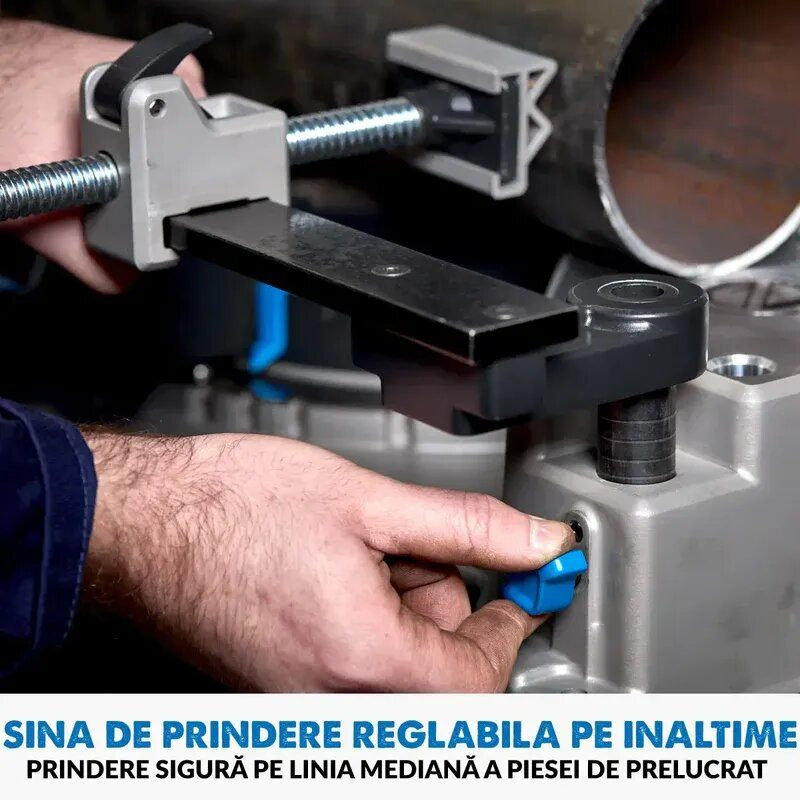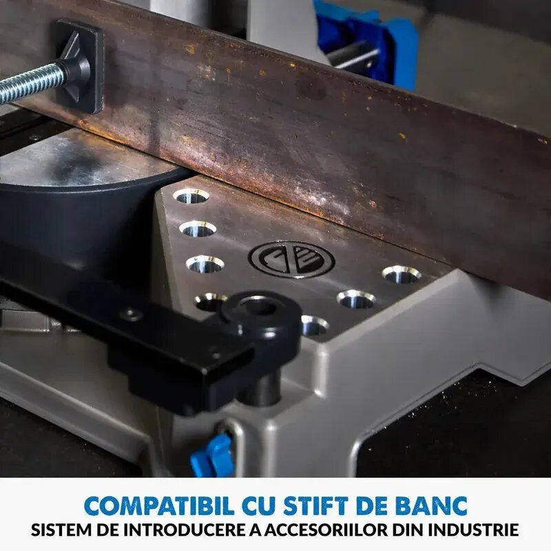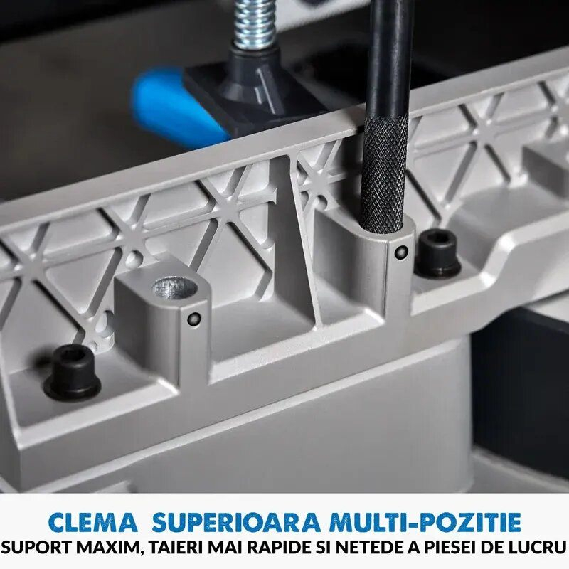 • S355MCS este echipat cu elemente de siguranta fiabile, inclusiv cleme superioare cu eliberare rapida si cleme frontale cu eliberare rapida. Fierastraul va va ajuta sa taiati cu usurinta chiar si piesele de mici dimensiuni