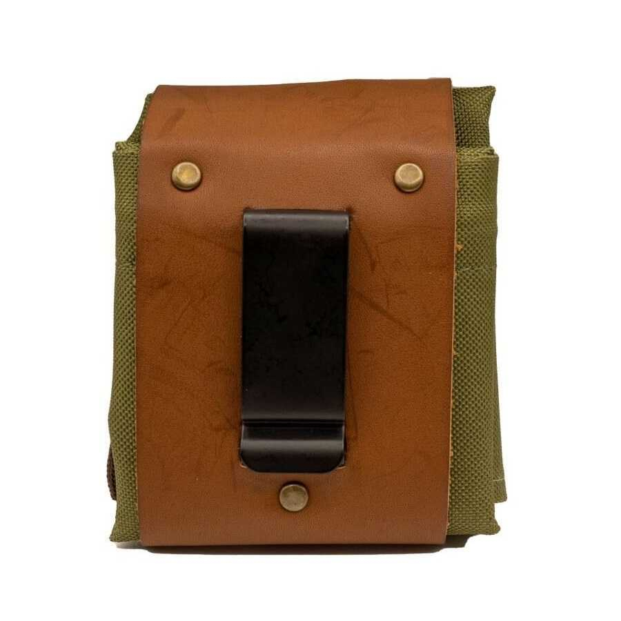 Fabricata din piele si panza cerata, geanta este excelenta pentru activitati in aer liber. Se ataseaza la curea, fiind de dimensiuni mici, dar se poate transforma intr-un saculet atunci cand este deschisa. Este ideala pentru a transporta tot ce va intereseaza in timpul plimbarilor prin natura: flori, seminte, ciuperci, scoici, mici gustari, crengute de foc, frunze, conuri de pin etc, si evident pentru a transporta apa de baut