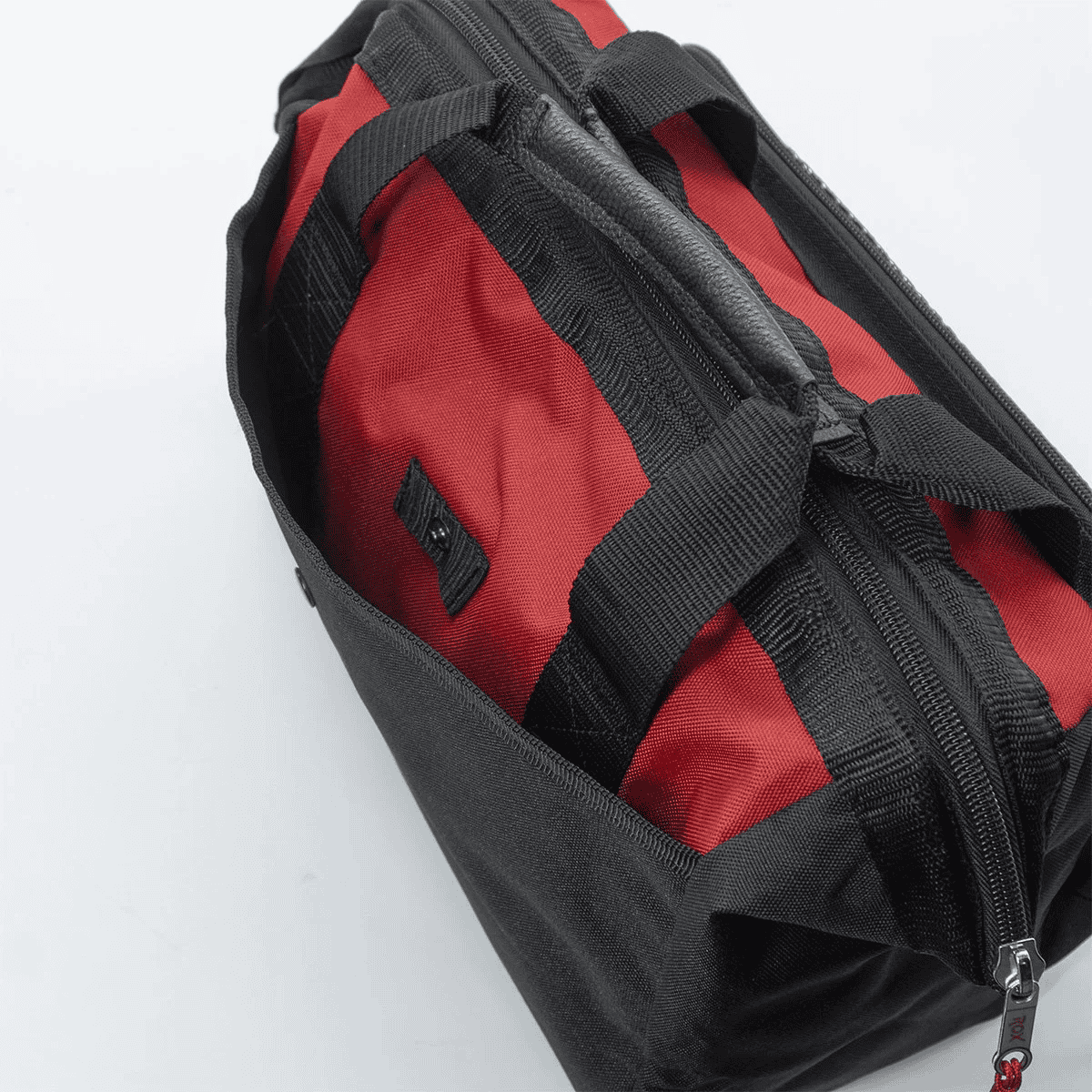 Mecanism metalic pe marginea fermoarului compartimentului principal, pentru o farma patrata