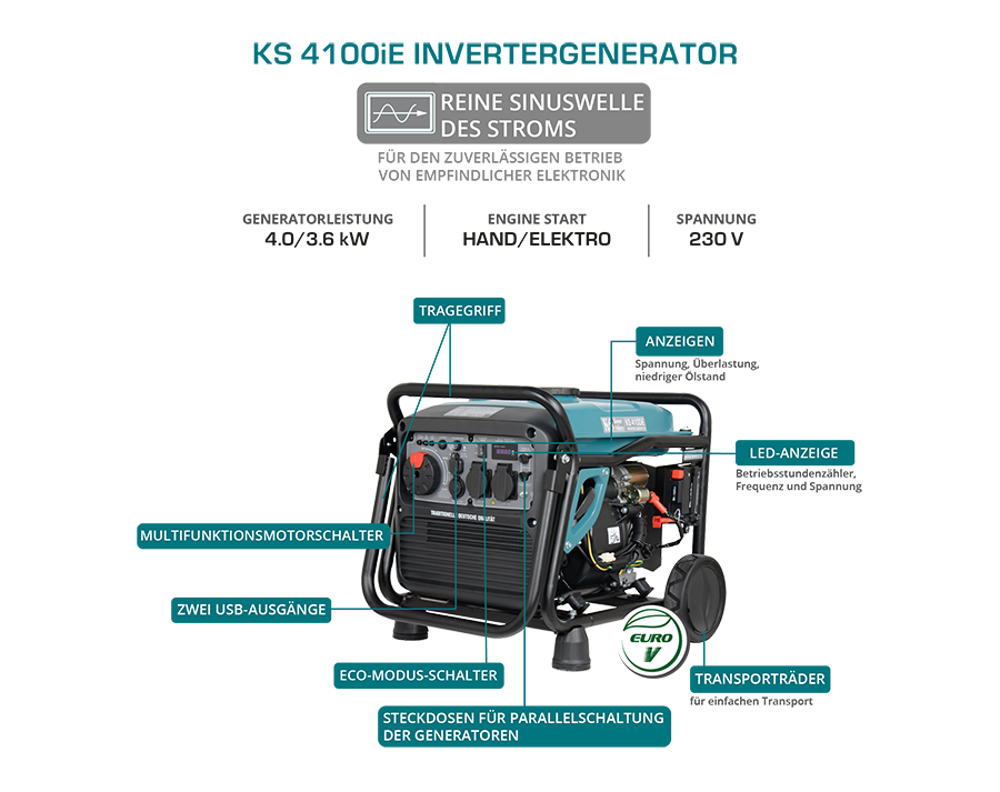 Toate modelele sunt bazate pe motoare robuste, care îndeplinesc toate standardele de calitate europene, inclusiv EURO V. Motoarele generatoarelor invertoare K&S au un mod Economy, care permite utilizarea generatorului la viteze reduse și reduce consumul de combustibil cu până la 50%.
