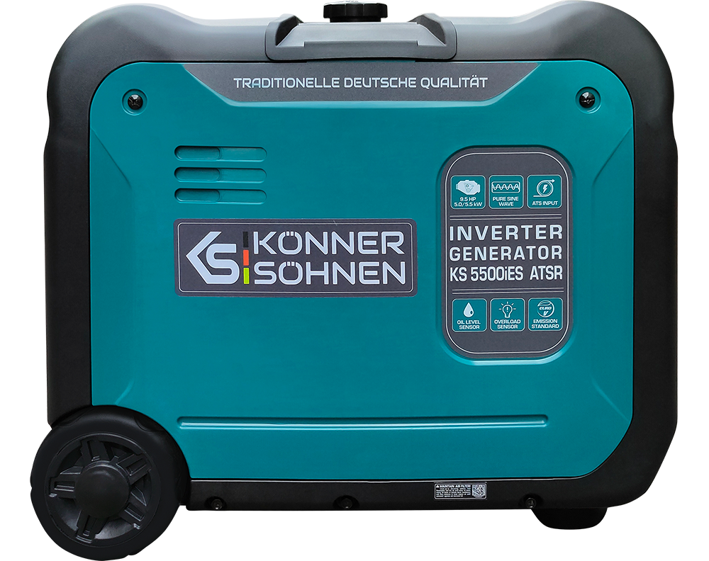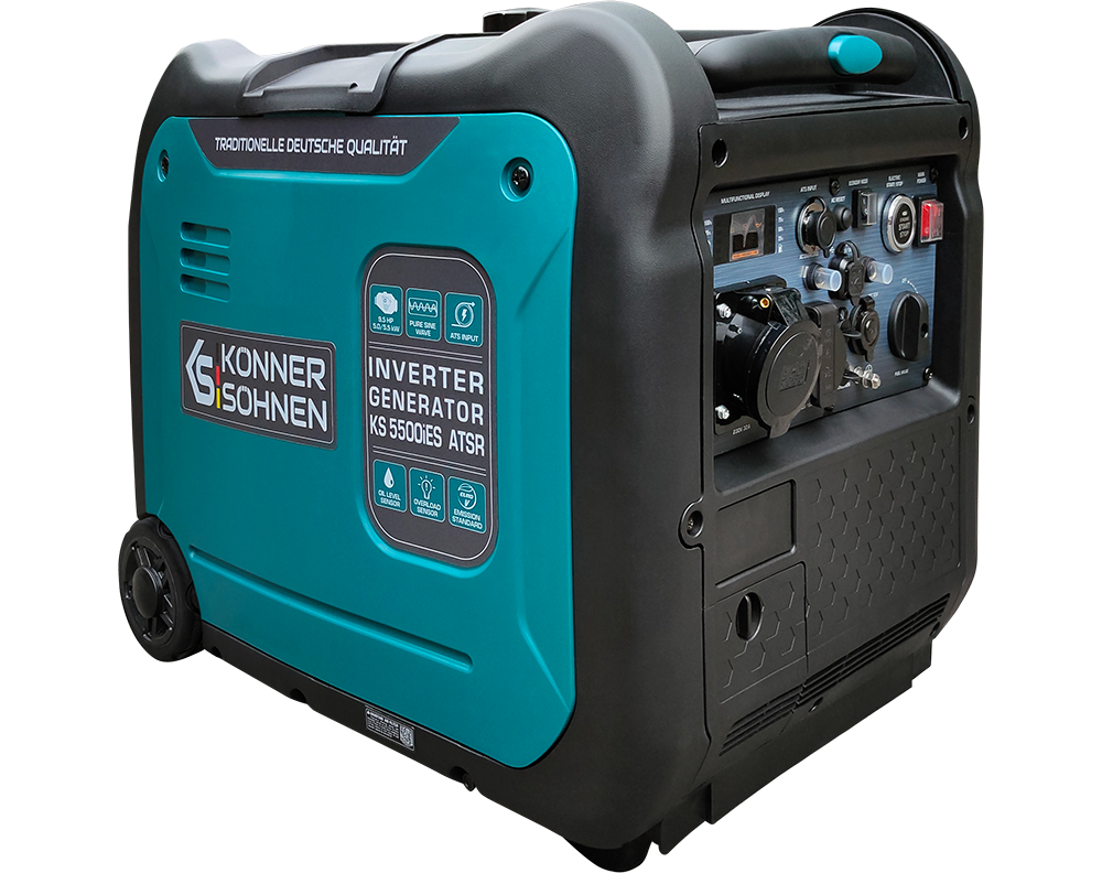 Generatorul invertor KS 5500iES ATSR al mărcii germane „Könner & Söhnen” este o sursă de energie electrică convenabilă, compactă și aproape silențioasă. Una dintre caracteristicile principale ale acestui model este că produce curent electric cu undă sinusoidală pură.