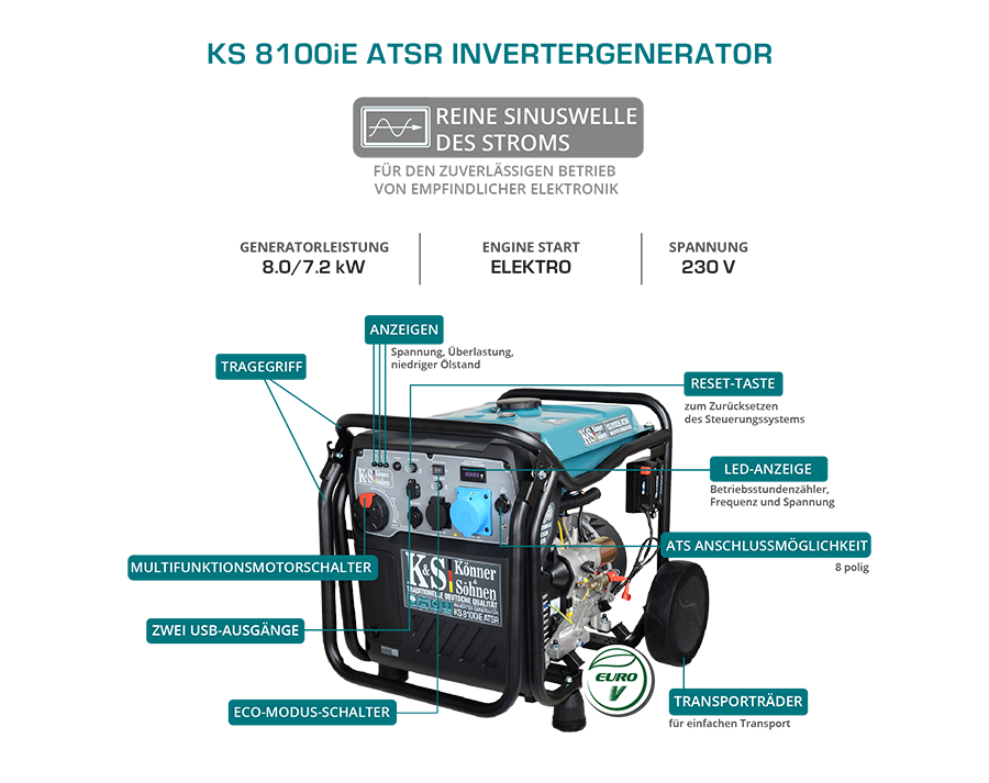 Toate modelele se bazează pe motoare robuste, care îndeplinesc toate standardele de calitate europene, inclusiv EURO V. Motoarele generatoarelor cu invertor K&S au un mod Economic, care permite utilizarea generatorului la viteze reduse și reduce consumul de combustibil cu până la 50%.