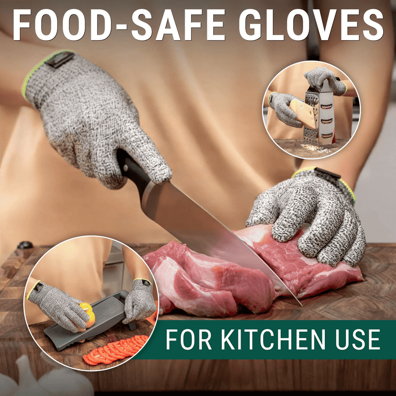 • Manusi ce ofera o protectie superioara fie in lucrul cu unelte ascutite, atunci cand sculptati in lemn, pregatiti mancare, lucrati in gradina sau lucrati la diverse proiecte. Sunt 100% sigure pentru alimente, asca ca puteti taia cu incredere carne, puteti taia legume cubulete sau razui fara griji, si le puteti purta afara, fiind excelente si pentru diverse activitati de gradinarit: plivit, taiat sau alte treburi din gradina