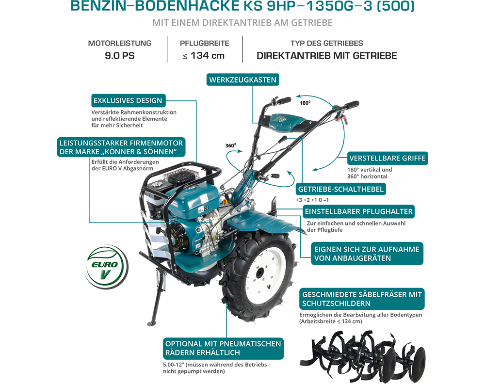 Motoarele cultivatoarelor în patru timpi, performante și eficiente din punct de vedere al consumului de combustibil, de la Könner & Söhnen respectă cele mai recente standarde de emisii EURO V, sunt proiectate pentru funcționare continuă și oferă performanțe ridicate.