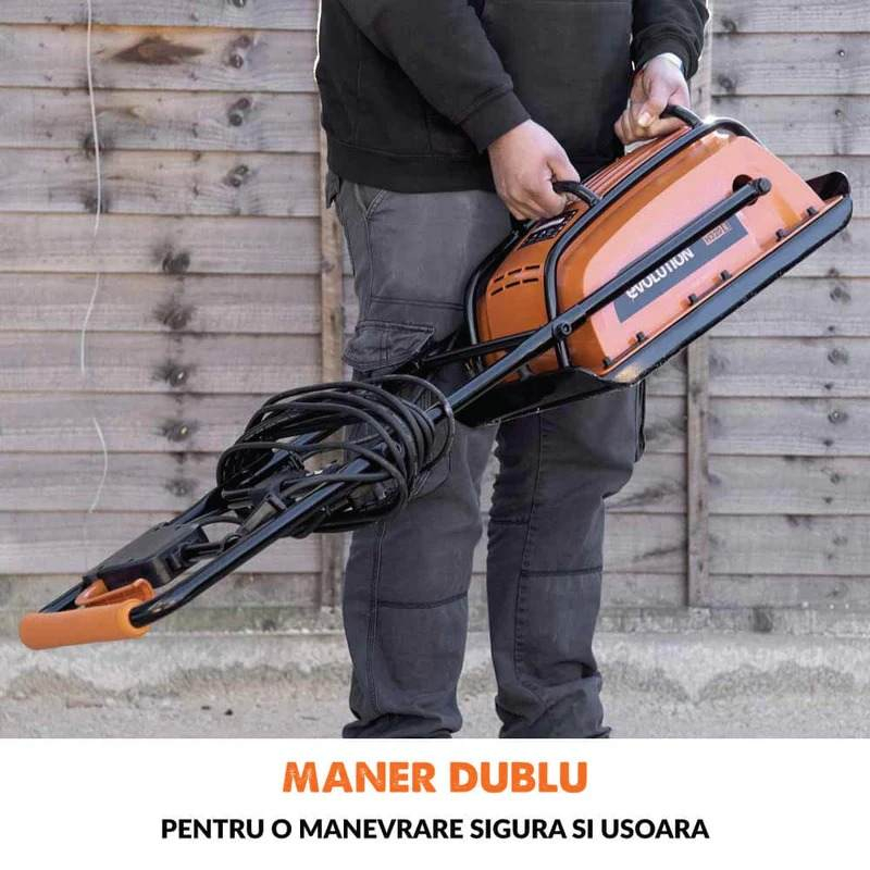 • Inima acestui echipament este un motor cu inductie de 300 W, capabil sa genereze o forta de impact de 5kN. Tehnologia sa de joasa frecventa cu amplitudine mare asigura o compactare de adancime, in timp ce sistemul de amortizare integrat protejeaza utilizatorul, reducand semnificativ vibratiile transmise in maner