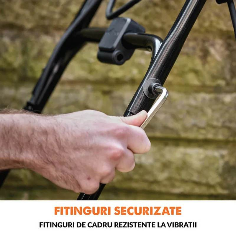 • Sistem anti-vibratii: Dotat cu amortizoare pentru un confort sporit. Cadrul de protectie dublu ofera rezistenta suplimentara si usureaza manipularea in timpul transportului