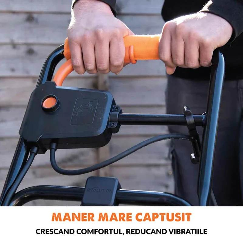 • Confortabil si sigur: Utilizare usoara datorita sistemului de pornire optimizat si a manerului ergonomic cauciucat. Motorul cu inductie nu emite gaze toxice, spre deosebire de variantele pe benzina