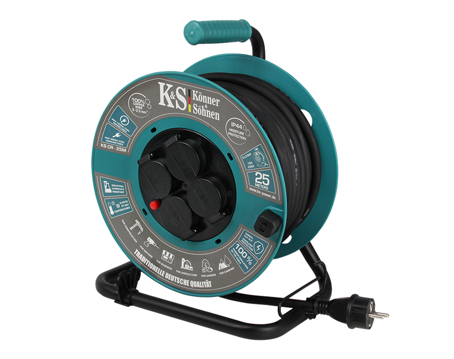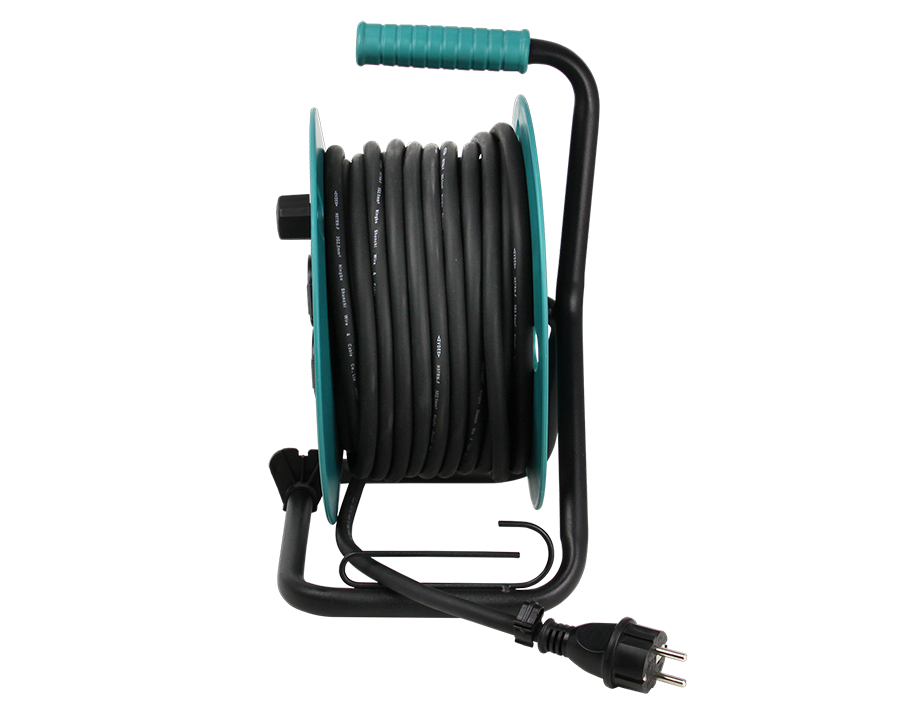 Cablu cu izolație din cauciuc sintetic și înveliș din cauciuc neoprenic, rezistent la îndoire și torsiune, menținându-și elasticitatea la temperaturi cuprinse între -40 °C și +90 °C. Complet protejat împotriva umezelii, radiațiilor UV, ozonului, substanțelor chimice și șocurilor mecanice (lovituri, căderi, compresiuni), fiind ideal pentru utilizare în orice anotimp, atât în interior, cât și în exterior. Prizele bobinei sunt echipate cu capace de protecție.
